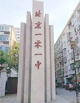 1955年,學(xué)校定名為北京一零一中,郭沫若親筆題寫校名,并釋其含義為"百尺竿頭,更進一步"。